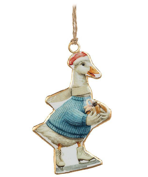 Add some quirky charm and nostalgic style to your holiday decor with this delightful Skating Goose Ornament. Crafted out of metal, this glossy, double-sided ornament features a beautifully painted goose dressed for winter fun, ice skates and all, for a fetching complement to any Christmas tree.