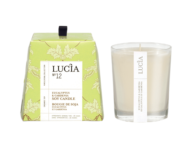 This delicate accord of Eucalyptus & Gardenia fragrance will add a classic touch to any room. Blended with 100% Pure essential Oils. Burning cleanly for many hours all Lucia candles are a safe and environmentally friendly alternative to existing petroleum based paraffin candles. Our organic Soya is sourced from farming collectives all over the world encouraging fair-trade communities.