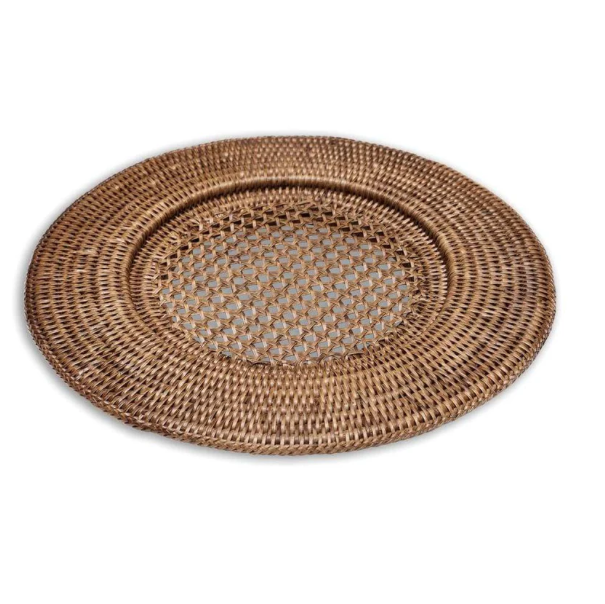 Handwoven and lacquered in Myanmar, our rattan table accents feature a durable double-weave and handcrafted charm. Constructed from naturally fast-growing rattan, these reusable pieces add an element of eco-friendly style to your tabletop. The natural material perfectly complements existing Caspari patterns and palettes with subtle texture and neutral color. Our rattan chargers are designed to fit Caspari plates and help lay a foundation for your place settings. Layer them beneath plates to add stability, use them as serving accents, or even use them in your tabletop décor and displays. Can be used for indoor or outdoor entertaining but are not suitable for outdoor storage or exposure to inclement weather conditions.