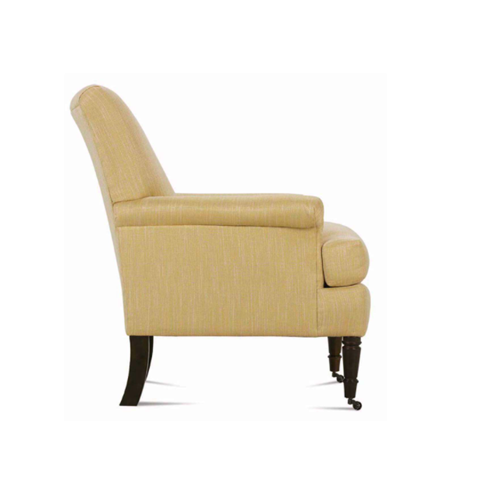 Hannah is a Penney & Company favourite because of it's compact size and airy proportions, plus it's so comfortable! The exposed wooden legs keep your space feeling open and the metal casters add an elegant touch.
