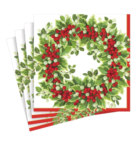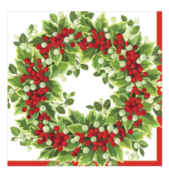 Holly and Berry Wreath Luncheon Paper Napkins