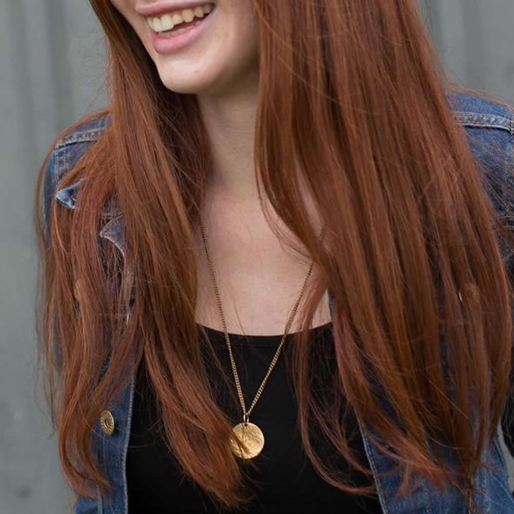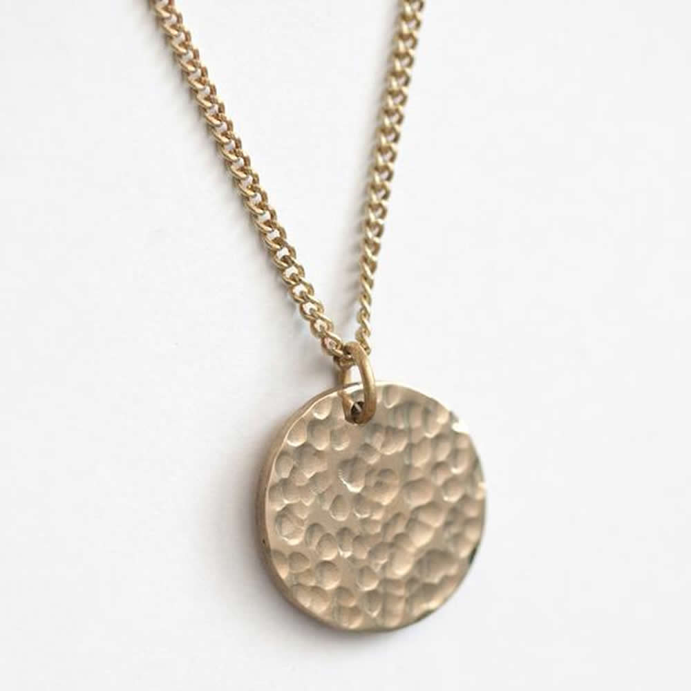 This beautiful Hammered Medallion Necklace is handcrafted in Kibera, Kenya. It is available in hammered brass or silver finish.