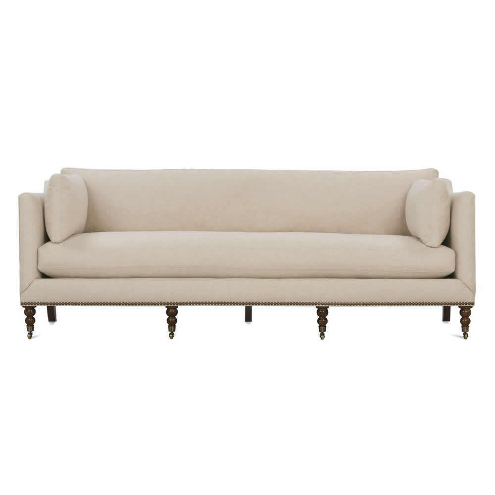 Vintage inspired, the Madeline sofa is a show stopper. With four wooden turned legs, each with casters and cosy bolster cushions at each end, it's gorgeous and the down wrapped cushions are truly luxurious.