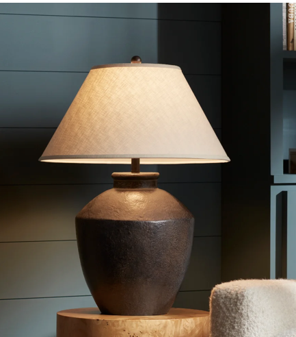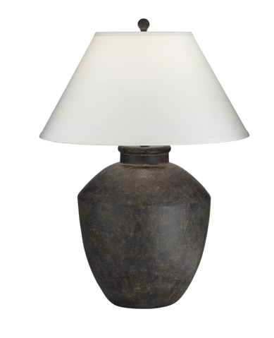 Over sized black pottery-looking table lamp.