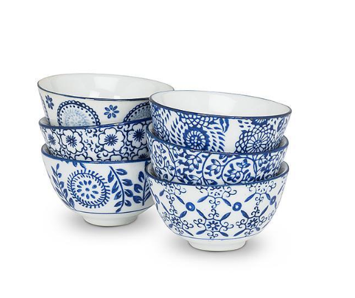 These small bowls from our blue and white collection are perfect for dip, sauce, condiments and more. Made of porcelain with intricate blue and white designs that evoke European tilework and Asian prints, these elegant bowls are ideal as serveware or eye-catching decor pieces. 6 assorted styles.