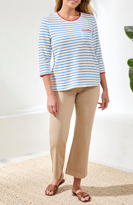 Royal Blue Striped 3/4 Sleeve Top with Contrast Detailing