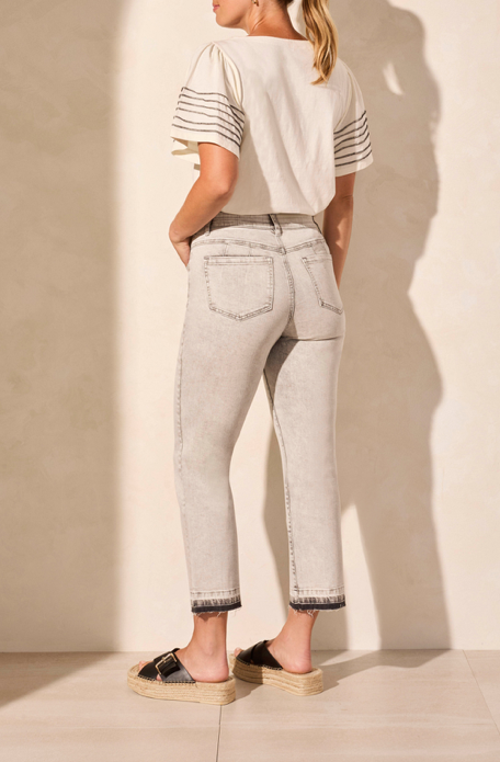 Sophia Curvy Cropped Jeans with Frayed Hem, Pale Grey