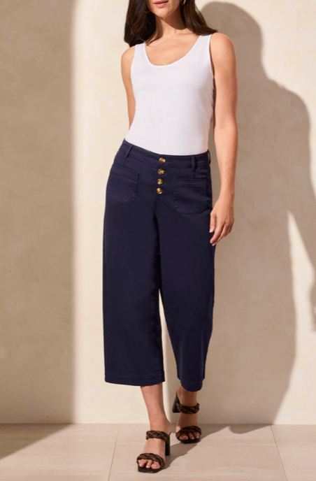 Audrey Mid Rise Cropped Jeans with Nautical Buttons, Dark Wash