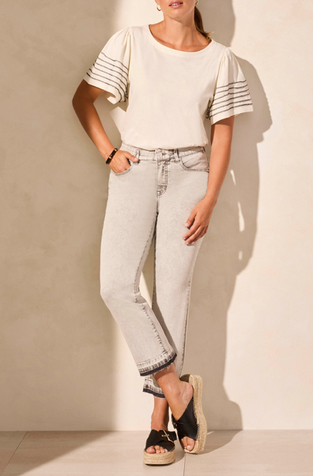 Sophia Curvy Cropped Jeans with Frayed Hem, Pale Grey