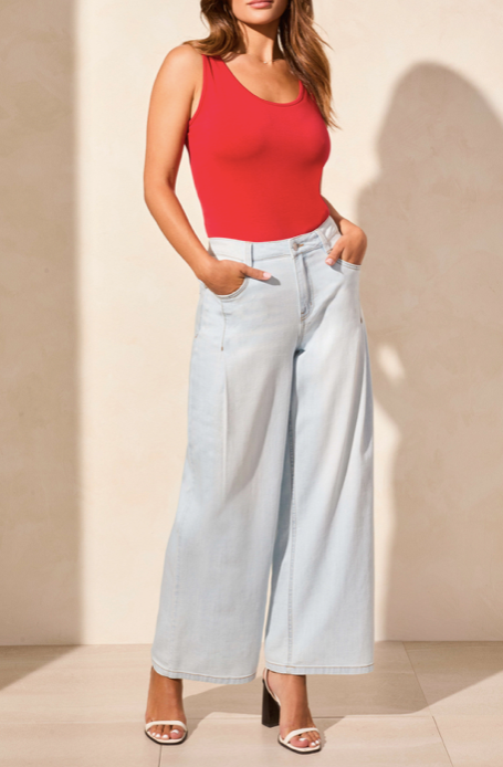 Audrey Mid Rise Wide Leg Cropped Jeans, Light Wash