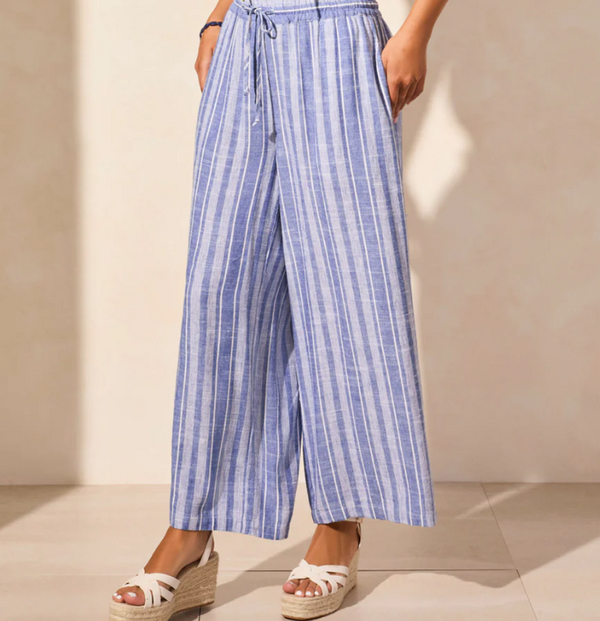 Linen Blend Striped Flowy Pants, Blue Stripe