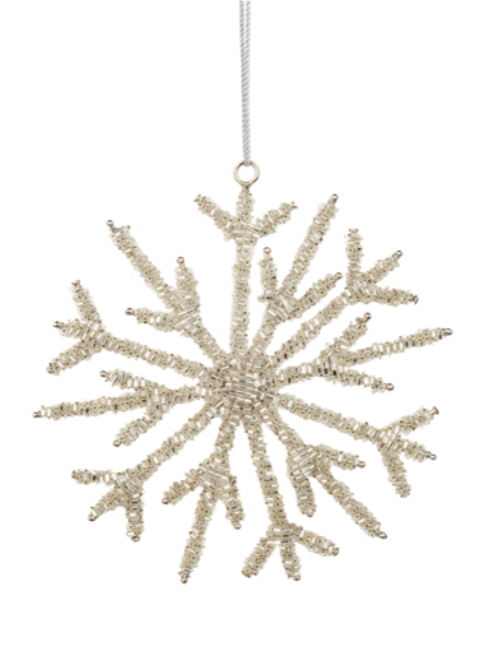 Pale Gold On Silver Glass Bead Snowflake Ornament
