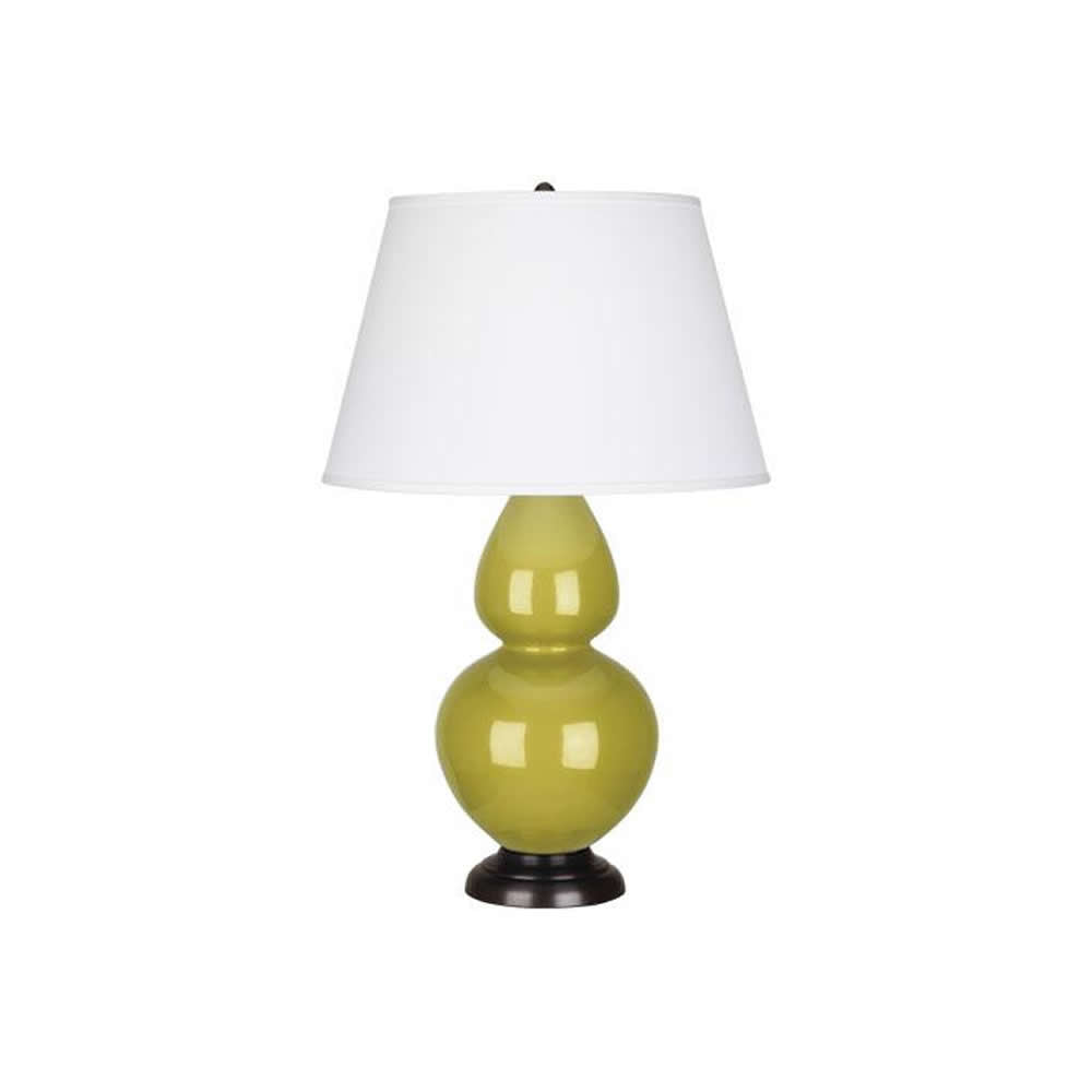 Citron glazed ceramic with deep patina bronze finished accents double gourd table lamp with pearl dupioni fabric shade . Our double gourd collection features a simple but gracefully curving silhouette. Available in a wide array of vibrant colors.