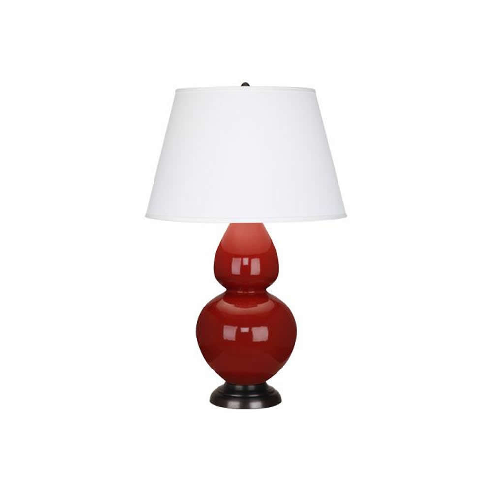 Oxblood glazed ceramic with deep patina bronze finished accents double gourd table lamp with pearl dupioni fabric shade . Our double gourd collection features a simple but gracefully curving silhouette. Available in a wide array of vibrant colors.
