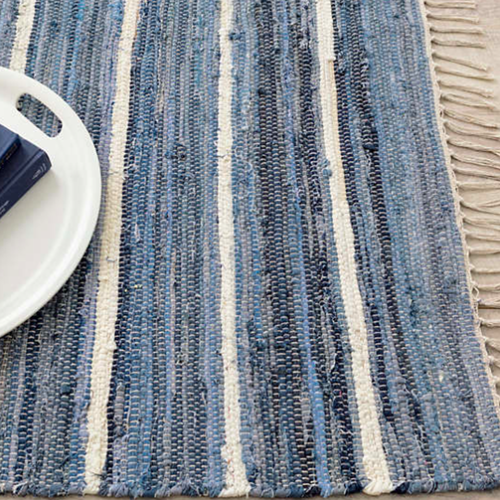 Denim Rag Stripe Woven Cotton Rug, 2x3