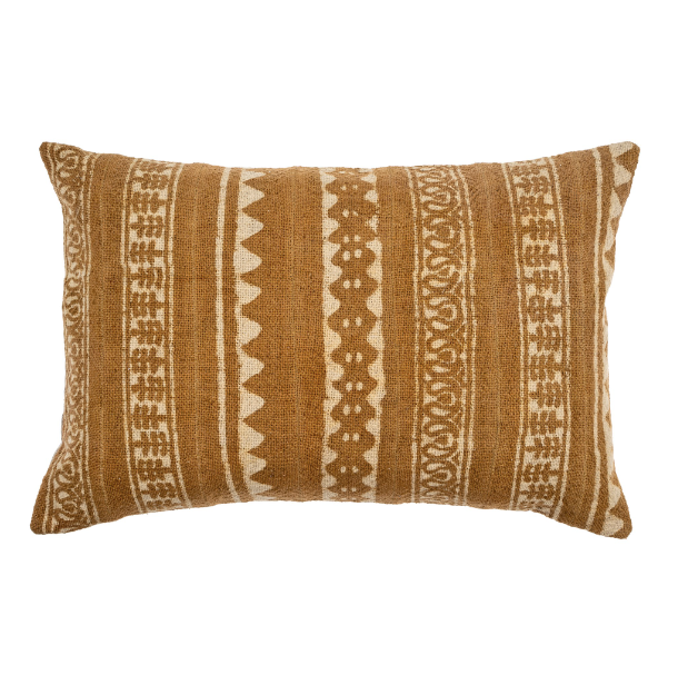 The Carob Pillow features dabu printing, a centuries old primitive mud resist block technique traditional to Bagru, a printing mecca outside of Jaipur. Defined by rich spice tones and bold prints, this is a statement piece rich in style and authenticity. Complete with a premium feather down filler for fabulous fluff factor and comfort you'll want to sink your head into. Machine Wash Gentle.