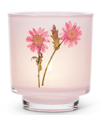 Enhance the ambiance anywhere with these subtle yet eye-catching Frosted Votive Candle Holders with Pressed Flowers. Crafted out of glass and available in four assorted styles, each of these frosted votive holders is accented with a gorgeous pressed-flower motif at centre – a unique, understated complement to flickering votive candlelight.