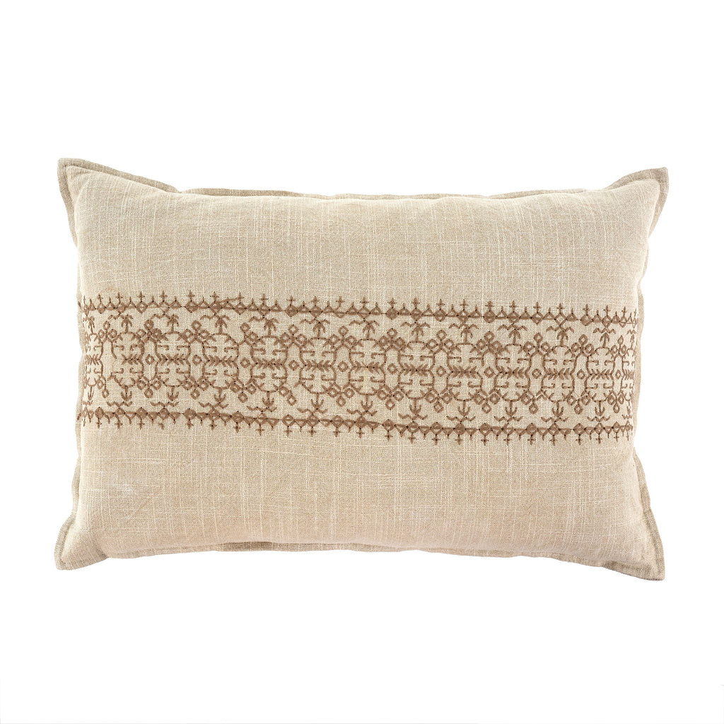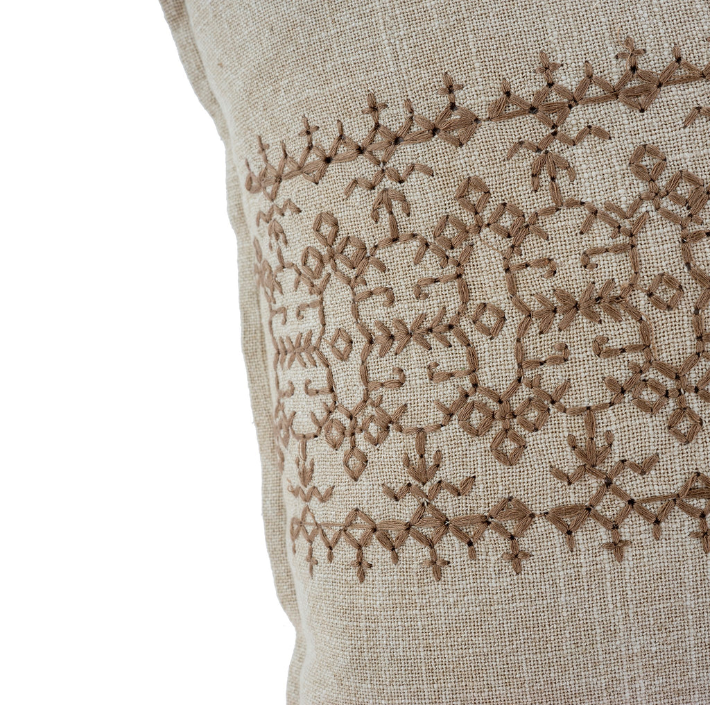The classically neutral Noemie Embroidered Pillow features an intricate embroidered design on stone-washed textural slub cotton with linen-like feel. It's easy to style atop other layered neutrals on your bed, sofa or favourite reading chair. Machine Washable.
